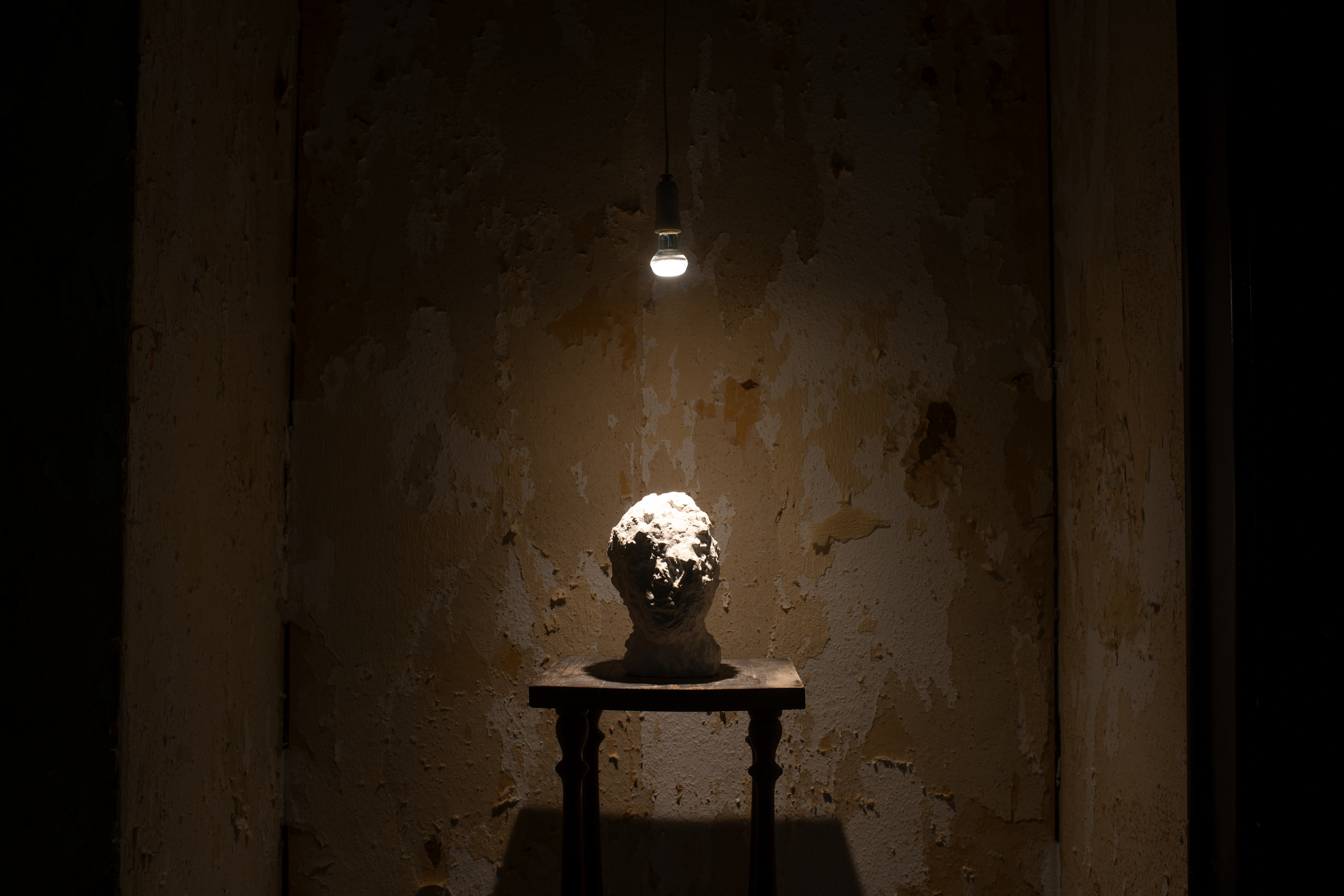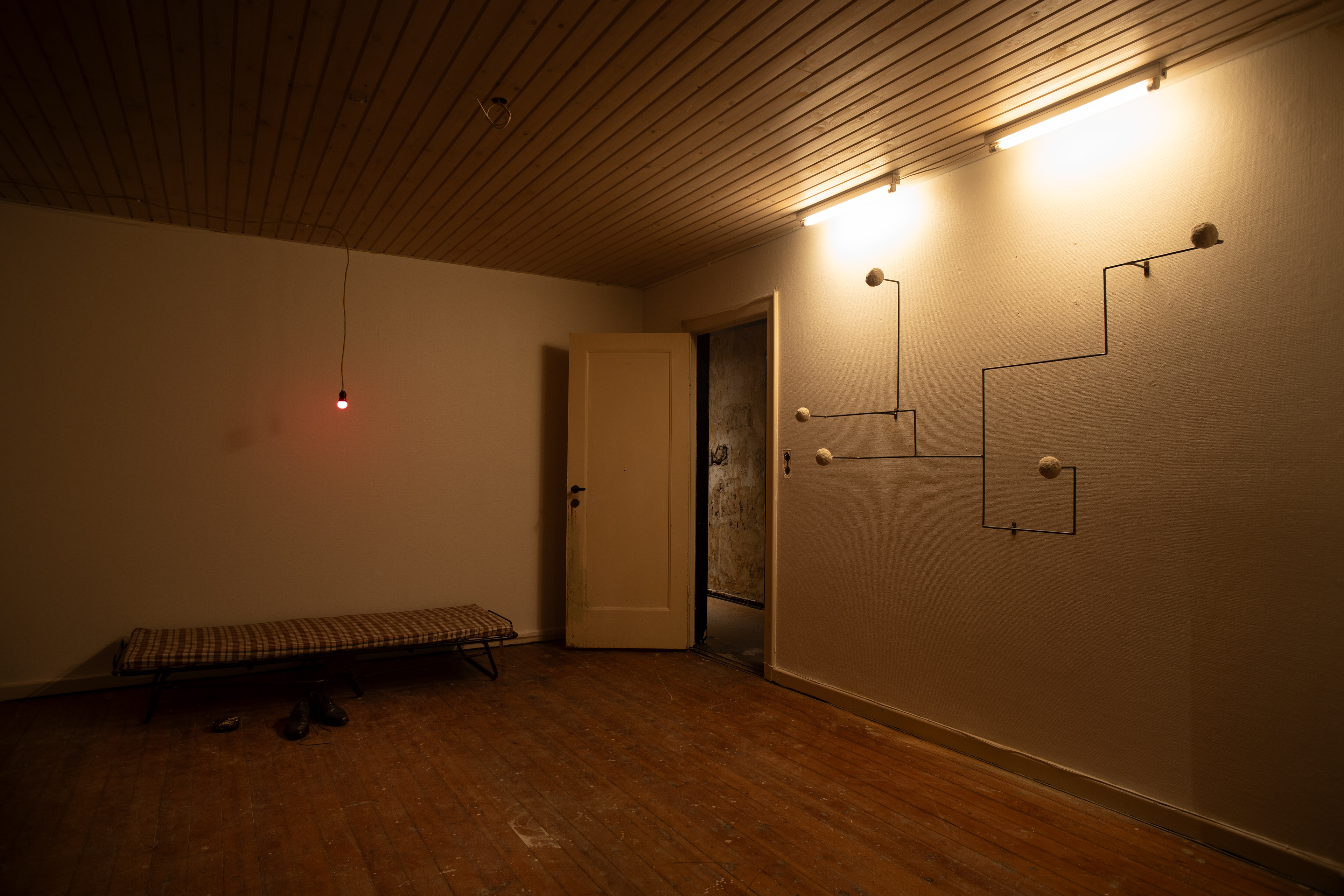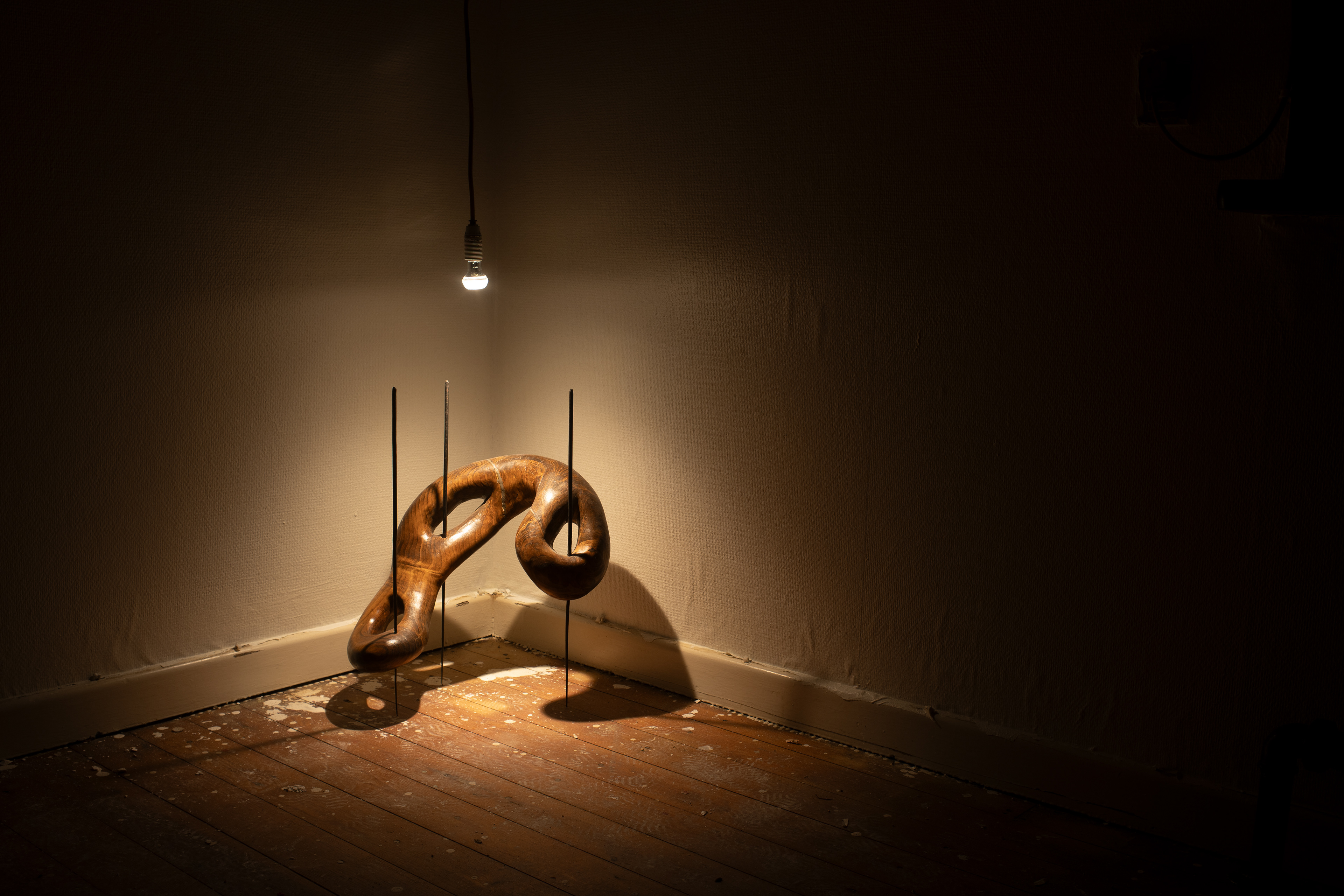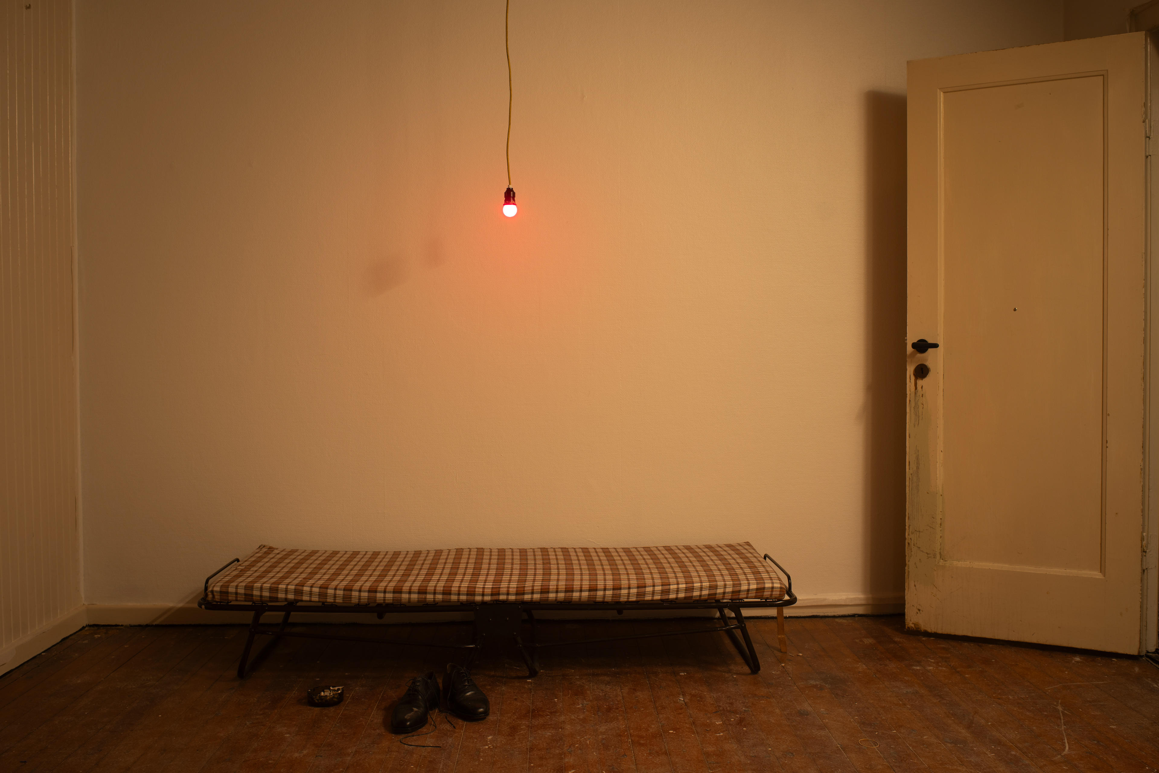 too dark for jazz is a video and sculpture installation that unfolds in an old, crumbling house from the 1950s, which is scheduled for demolition after the exhibition. Since the summer of 2025, I have been working with the house to make the exhibition’s three rooms function together within the universe I wish to present to the audience. The exhibition presents new sculptures in dialogue with home-developed Super 8 film and video works on tape.